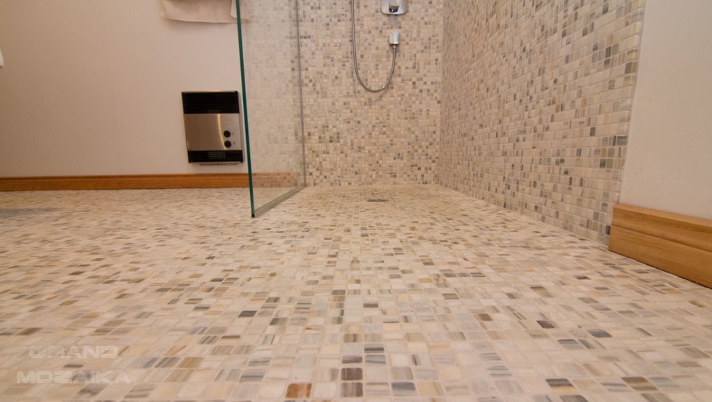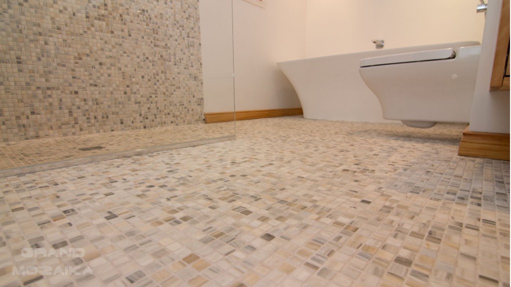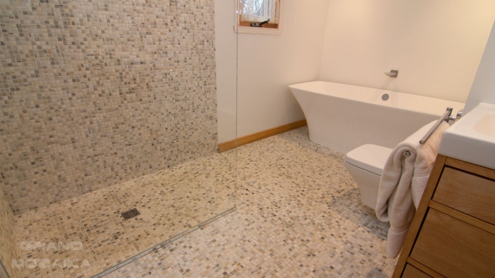 Бежевая мозаика в ванной комнате