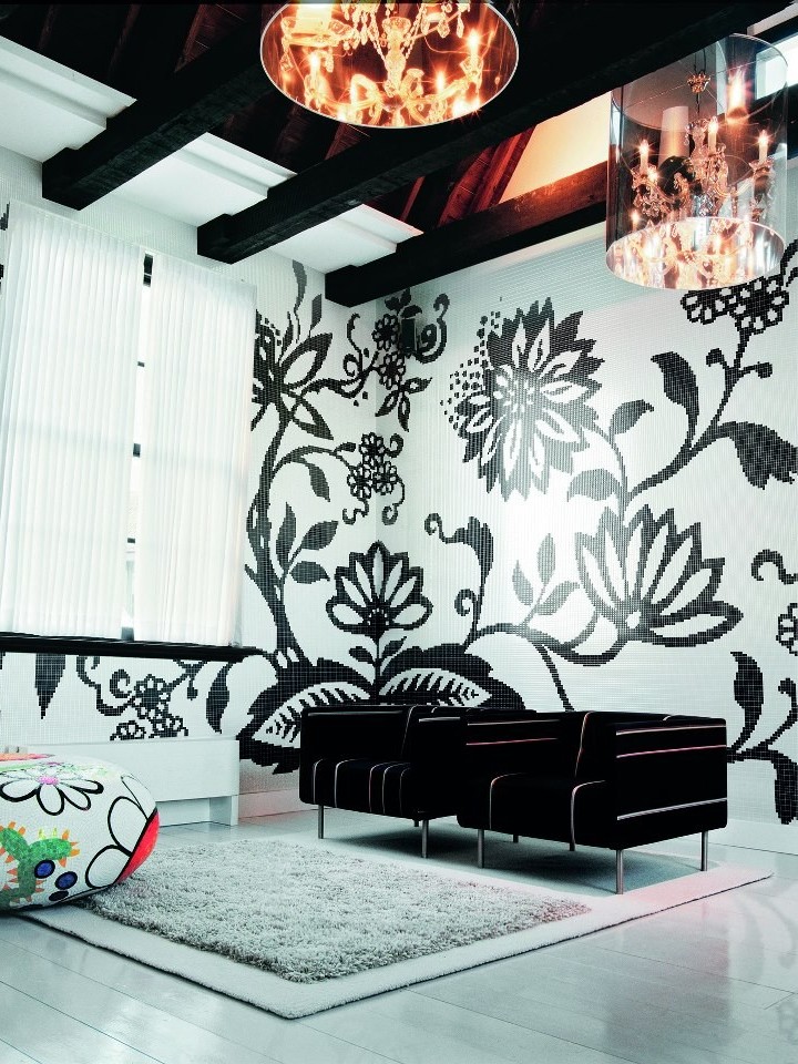 Обойная (пиксельная) мозаика в интерьереКаталог готовых решений представлен в разделе "Обои из мозаики"