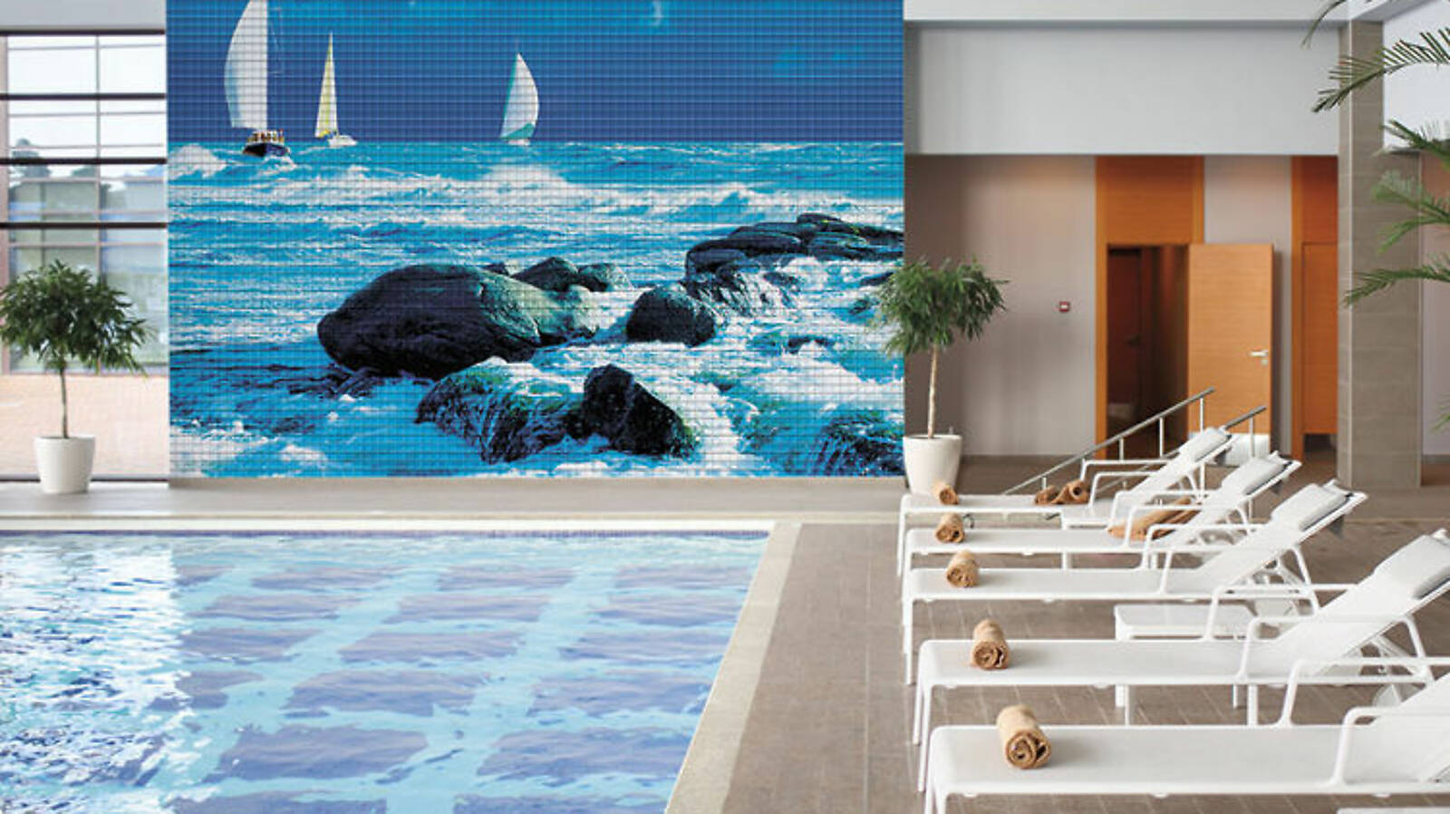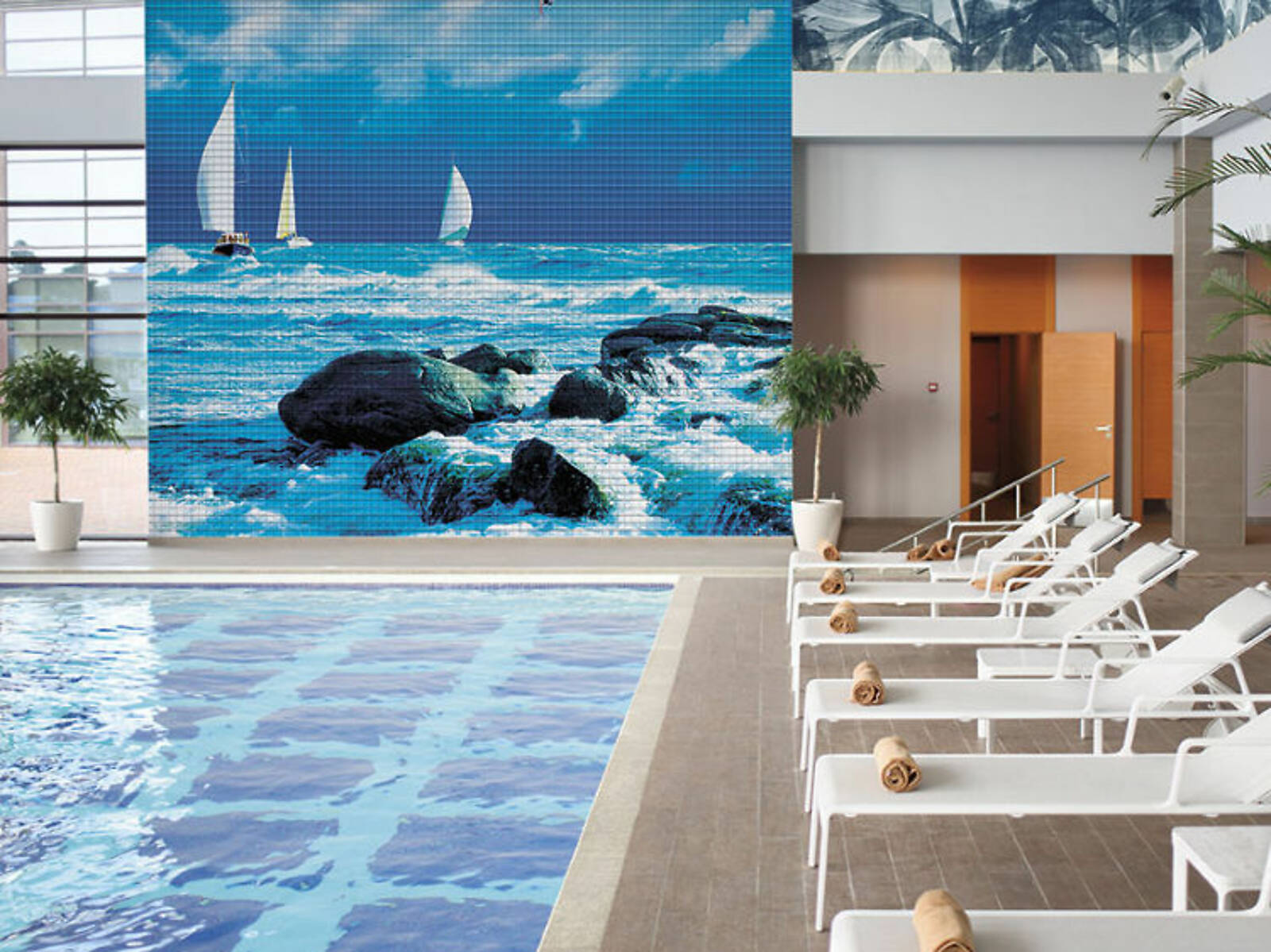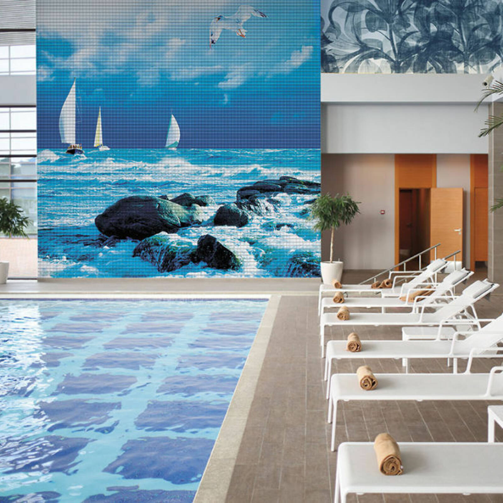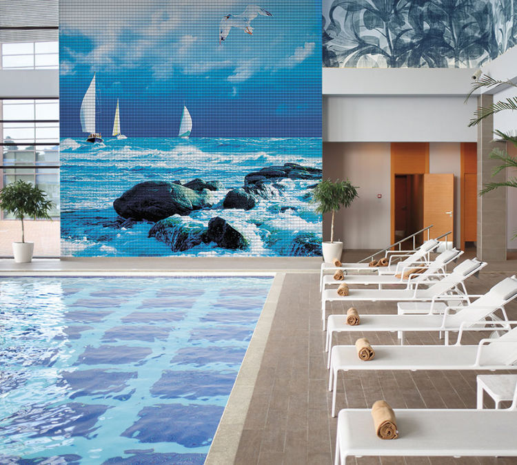 Технология производства материала позволяет воплощать в мозаичной технике любые изображения неограниченных размеров, как из нашего каталога, так и под заказ! Мозаику можно применять не только для отделки бассейнов и ванных комнат, но и в виде скинали (кухонных фартуков), бордюров и декоров, декорировать мебель и предметы интерьера.