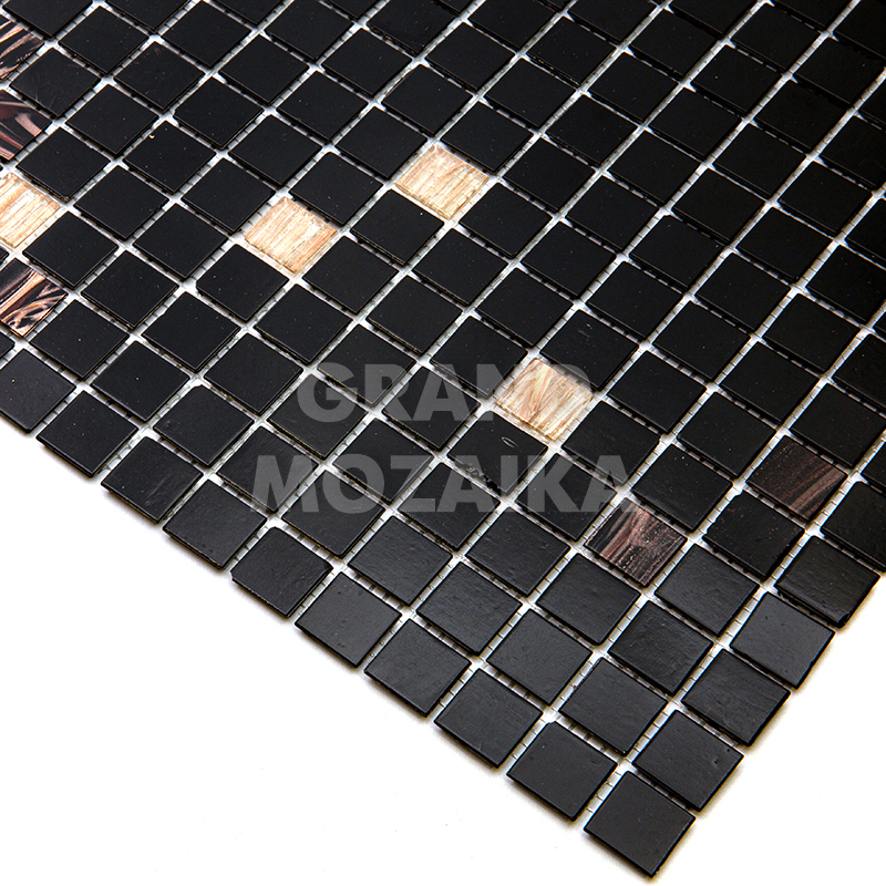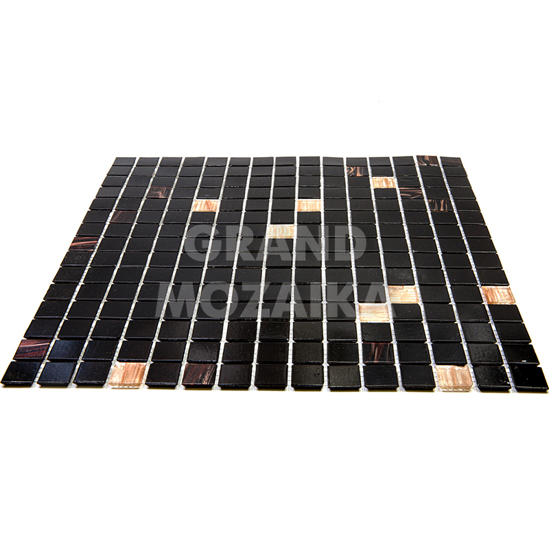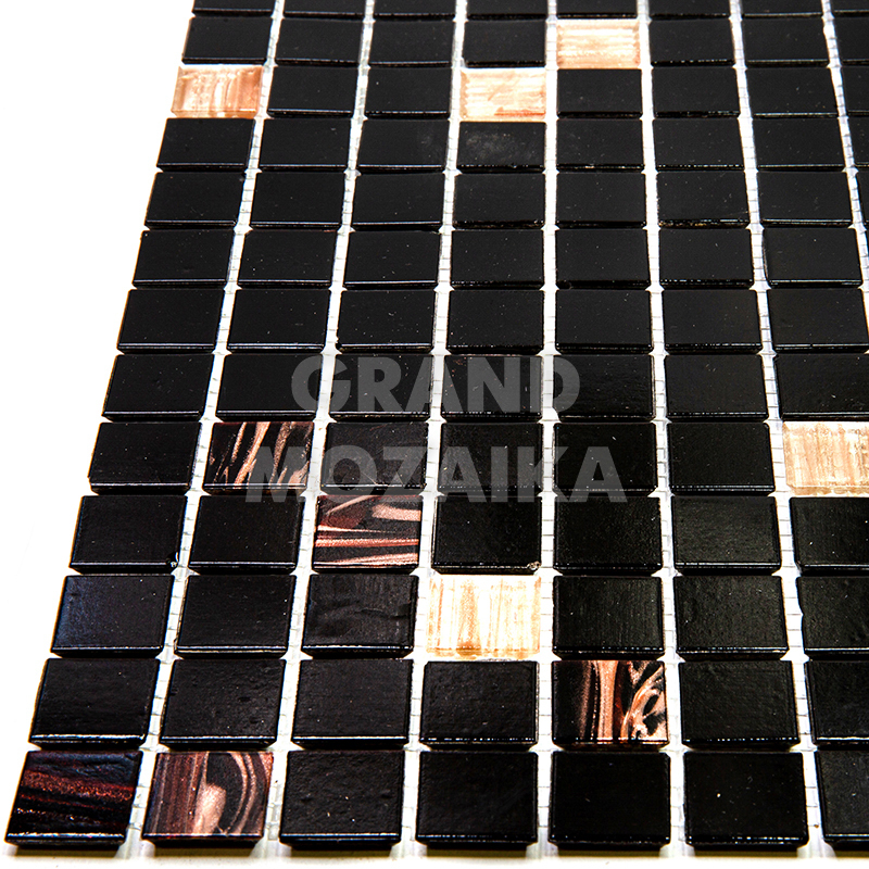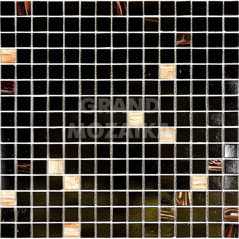 Мозаика для бассейнов серии Смеси из кусочков размером 20х20 см. Полотно 327х327 состоит из кусочков черного цвета, с вкраплением мозаик с размытым рисунком не требует особых навыков монтажа. Такая мозаика украсит любой бассейн и подойдет как для внутренней его отделки так и для внешней.