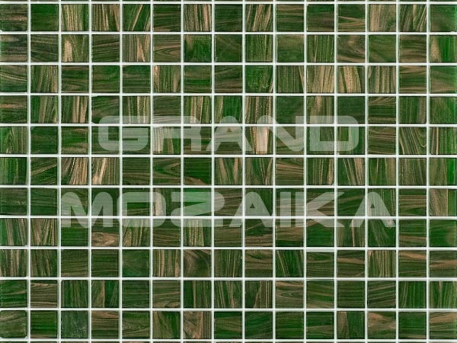 Мозаика для бассейнов серии Stella собрана из кусочков размером 20х20 мм. Каждый кусочек темно-зеленого цвета не похож на соседний своим необычным размытым рисунком, напоминающим натуральный полудрагоценный камень. Такая мозаика украсит и обогатит любое помещение.