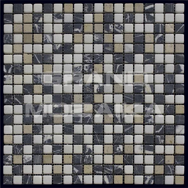 Состаренная мозаика из натурального камня серии Mix. Полотно размером 305х305 мм состоит из маленьких кусочков размером 15х15 мм.Элементы из бежевого и серого мрамора хаотически собраны в единое полотно.Такая мозаика привнесет уют в любой интерьер.