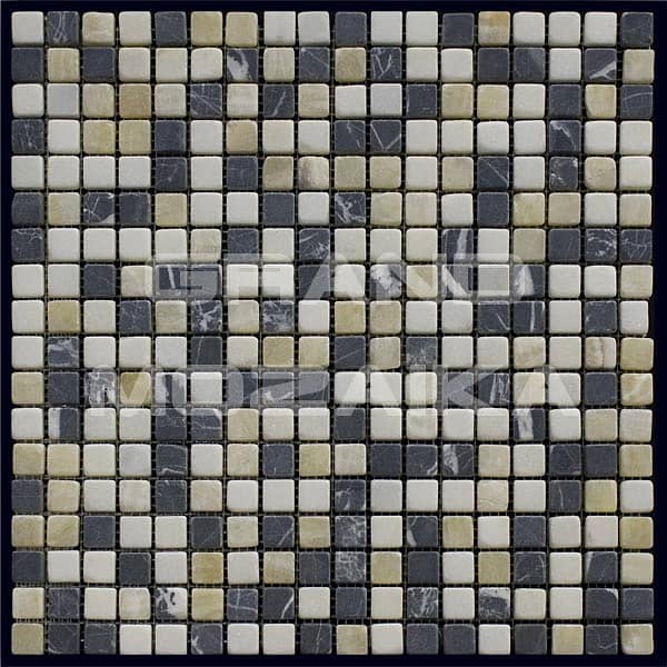 Состаренная мозаика из натурального камня серии Mix. Полотно размером 305х305 мм состоит из маленьких кусочков размером 15х15 мм.Элементы из темного и светлого серого мрамора хаотически собраны в единое полотно.Такая мозаика привнесет уют в любой интерьер.