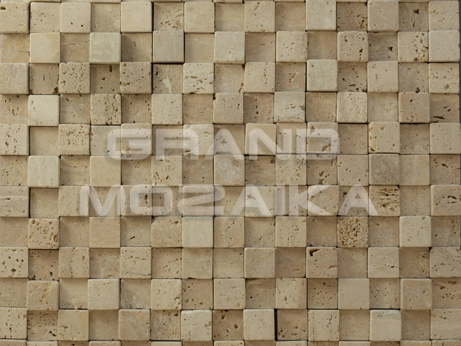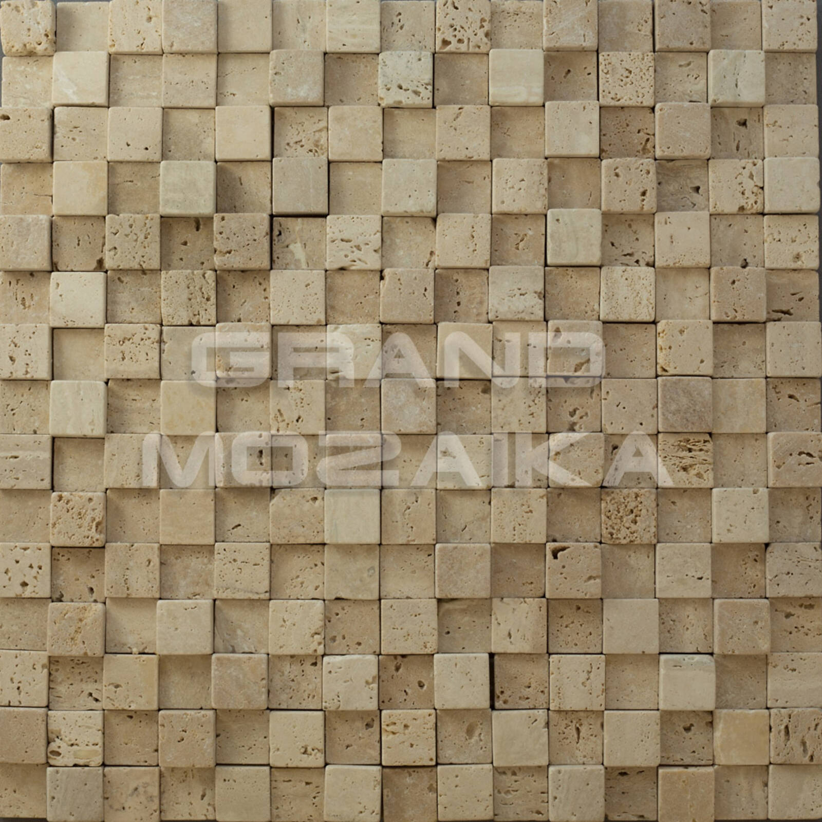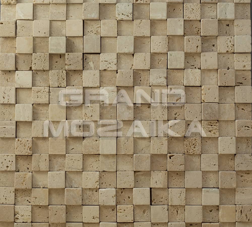 Мозаика из натурального камня серии Stone может использоваться для отделки не только внутренних помещений, но и фасада зданий. Приятный бежевый цвет и характерная пористая структура придадут естественности любой поверхности. Мозаики размером 20х20 мм уложены ровными рядами и закреплены на сетке размером 300х300 мм.