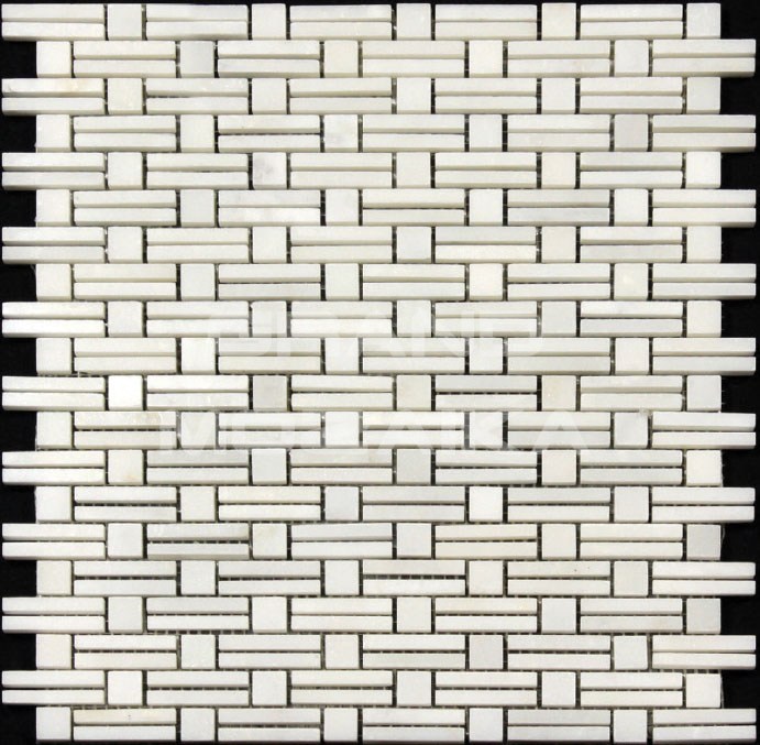 Мозаика из натурального камня серии S-Line выложена из белого полированного мрамора произвольной формы. Кусочки различной формы создают строгий геометрический рисунок. Такая мозаика украсит любой интерьер.