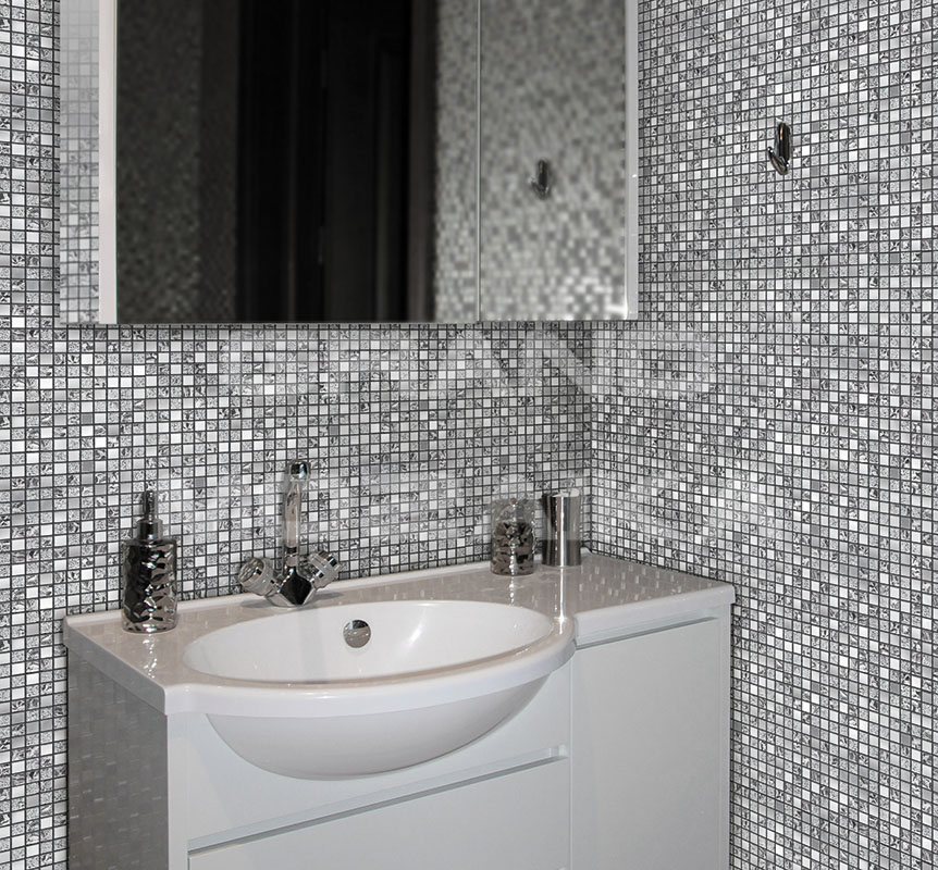 Монтировать следует только на бесщелочные, бескислотные клеи, так как в составе данной мозаики амальгама (фольга). Если использовать цементный клей, данная мозаика может почернеть.