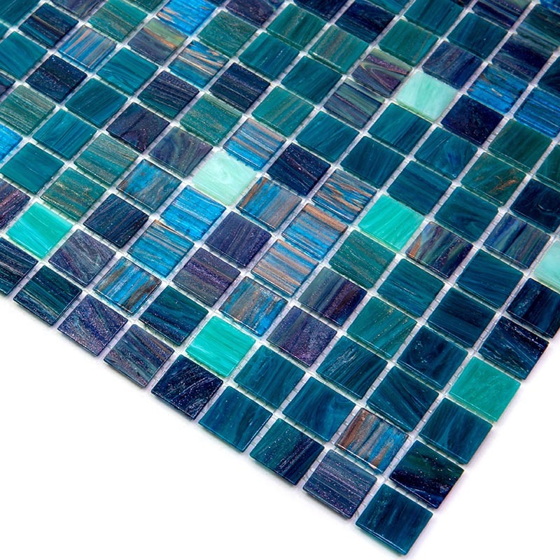 Мозаика для бассейнов серии Alma Pool из кусочков размером 20х20 см. Полотно 327х327 легко в монтаже и не требует особых навыков. Бирюзовая мозаика с авантюрином. Такое полотно украсит любой бассейн и подойдет как для внутренней его отделки так и для внешней.