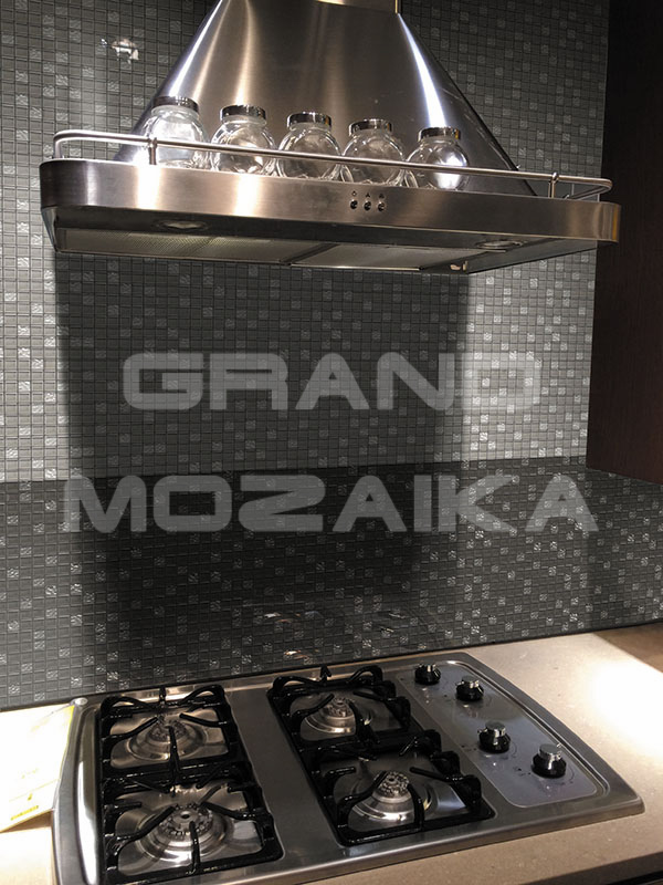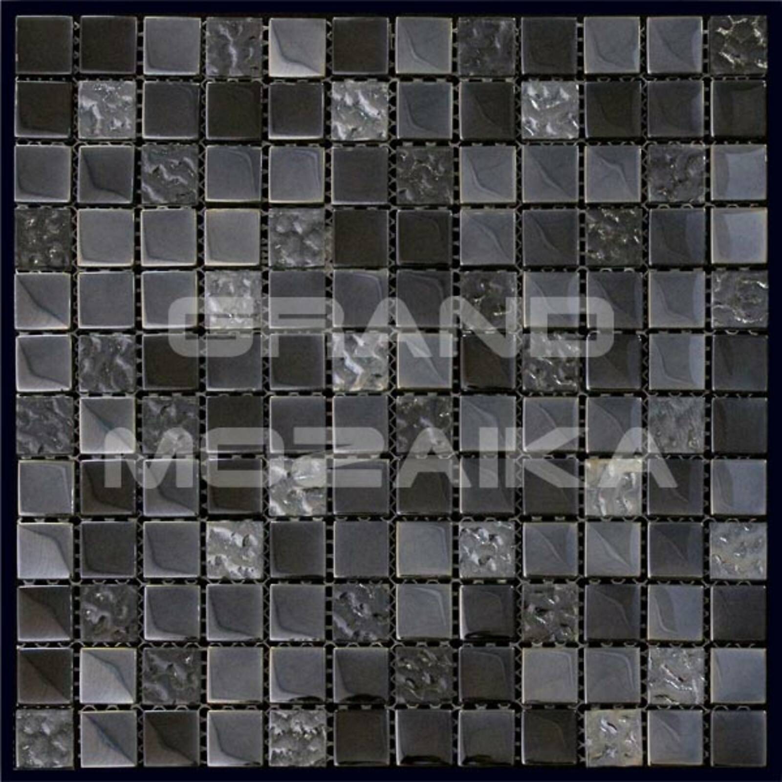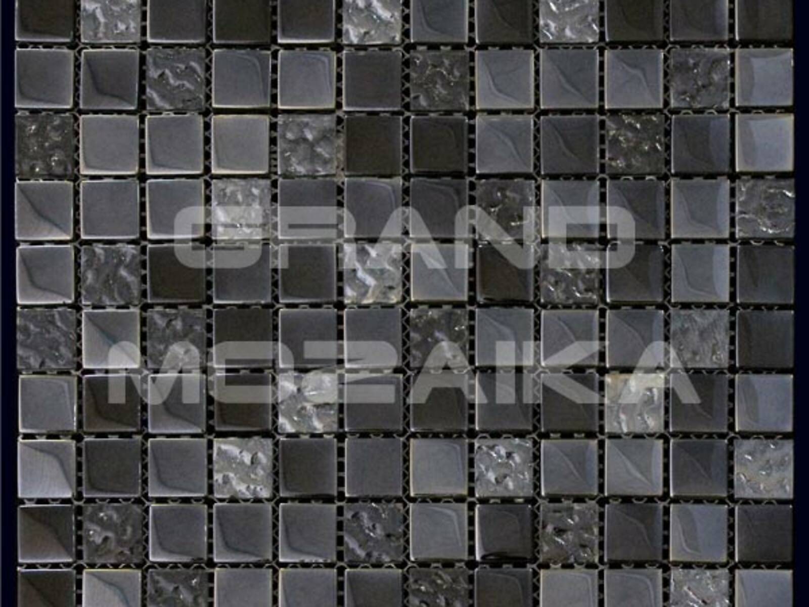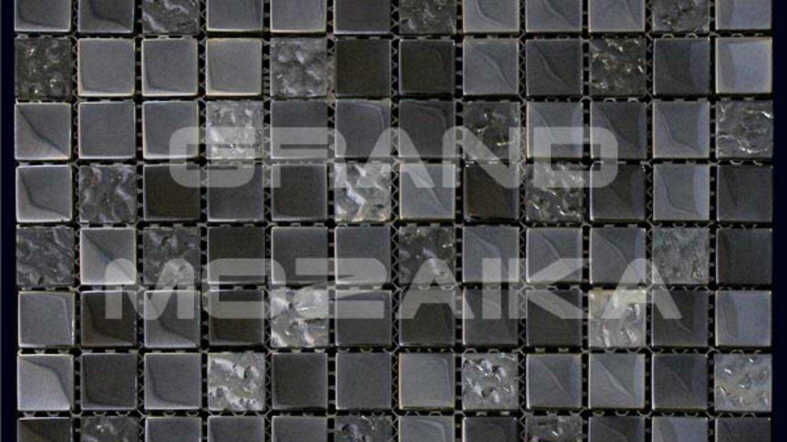 Стеклянная мозаика темно-серого цвета серии Dune. Состоит из мелких (23,5х23,5 мм) кусочков. Сочетание однотонных элементов и кусочков с необычной фактурой делает полотно неповторимым. Идеально подходит для отделки ванных комнат и других помещений. Поверхность глянцевая, размер сетки 300х300 мм. Толщина мозаики - 8 мм.