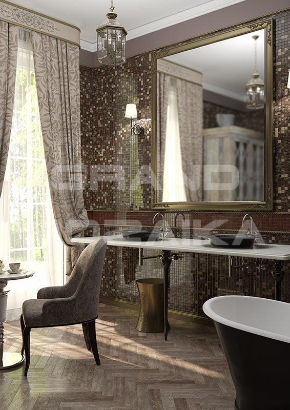 Стеклянная мозаика красно-коричневого цвета серии Color Palette. Поверхность мозаики глянцевая, размер чипа - 25,8х25,8 мм. Размер сетки 300х300 мм. Мозаики отлично дополнит интерьер любой квартиры выдержанный в стиле модерн.