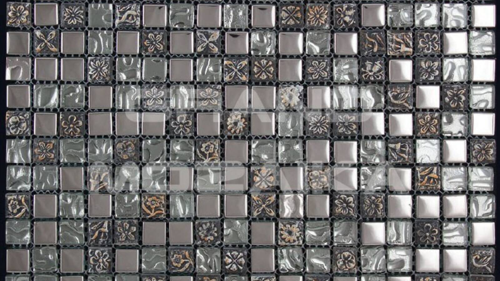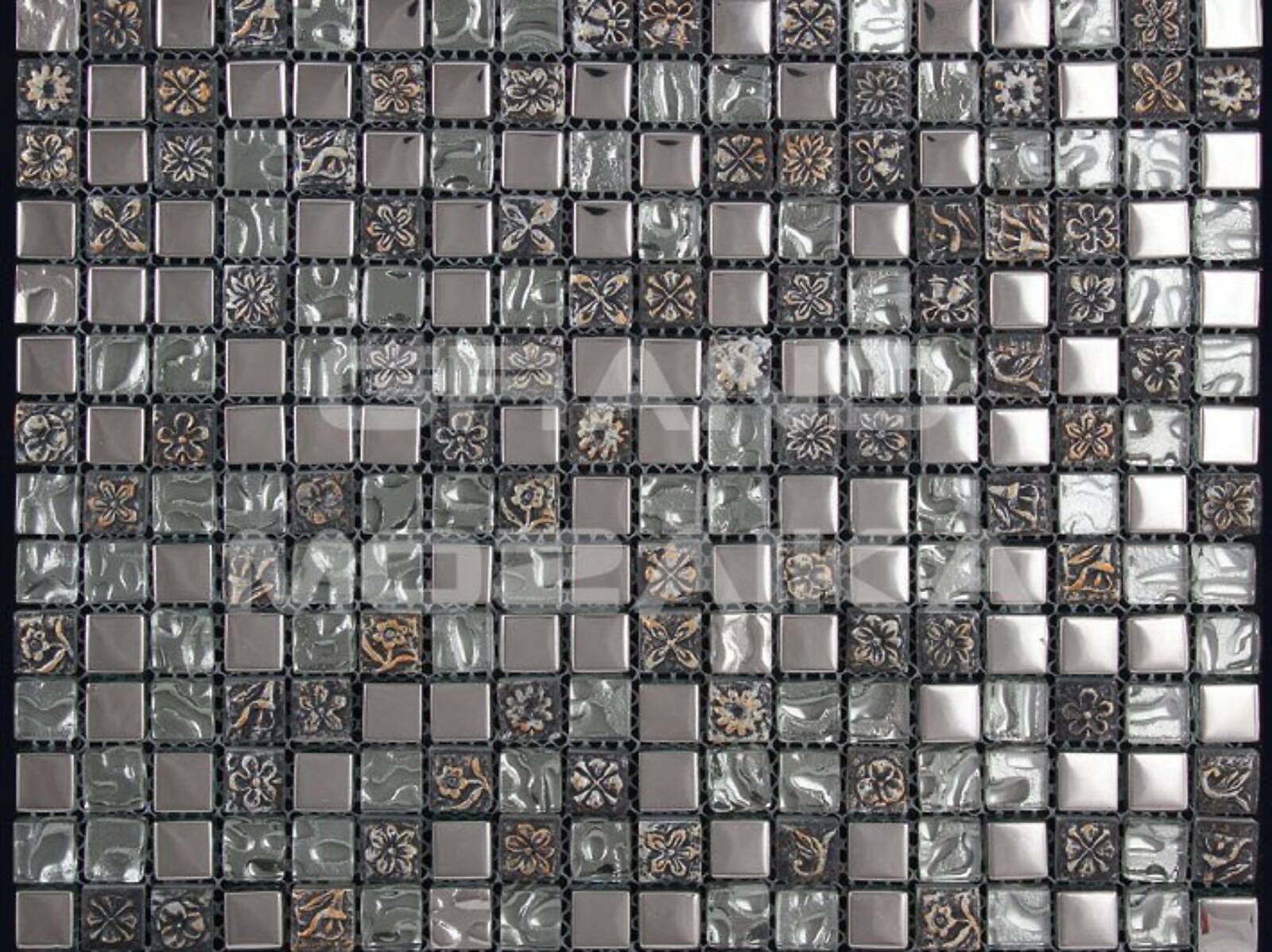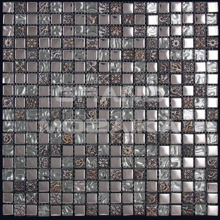 Элитная мозаика Luxury серии Inka состоит из кусочков размером 15х15 мм. Полотно выполнено из мозаик серого и серебряного цветов. Вкрапление мозаик с незамысловатым орнаментом делает полотно оригинальным. Интерьер дополненный такой мозаикой окунет вас в анналы древности.