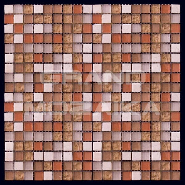 Микс мозаика серии Mix Glass&Stone состоит из маленьких кусочков размером 15х15 мм. Полотно размером 300х300 мм состоит из стеклянных и каменных мозаик различных оттенков розового цвета. Такая мозаика послужит оригинальным дополнение любого интерьера.