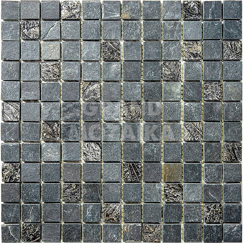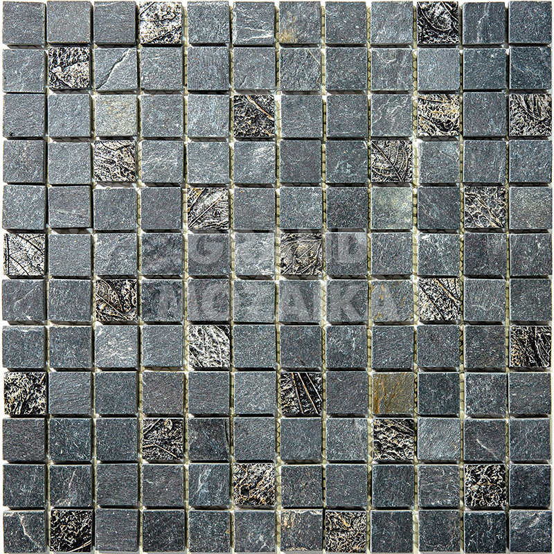 Элитная мозаика Luxury серии Inka состоит из кусочков размером 23х23 мм. Полотно выполнено из мозаик серого цвета. Вкрапление мозаик с незамысловатым орнаментом делает полотно оригинальным. Интерьер дополненный такой мозаикой окунет вас в анналы древности.