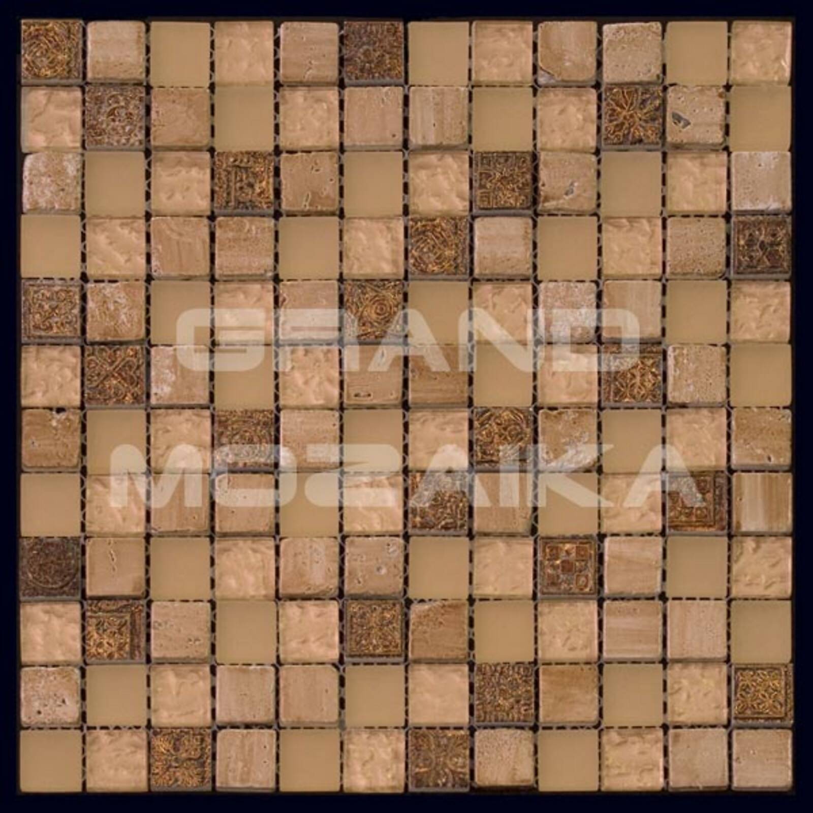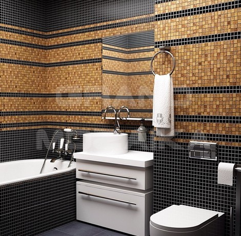 Элитная мозаика Luxury серии Inka состоит из кусочков размером 23х23 мм. Полотно выполнено из мозаик коричневых оттенков. Вкрапление мозаик с необычным рисунком, напоминающим фрески древности, добавляет роскоши в полотно. Такая мозаика сделает любой интерьер оригинальным. Такую мозаику можно так же скомпоновать с аналогичной мозаикой этой серии размера 15х15 мм.