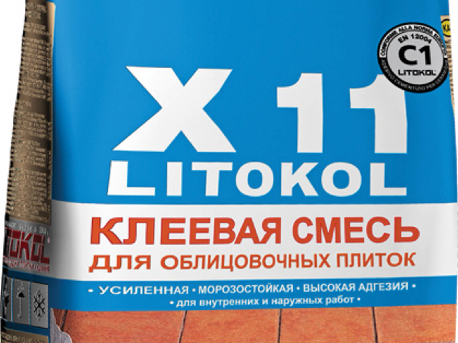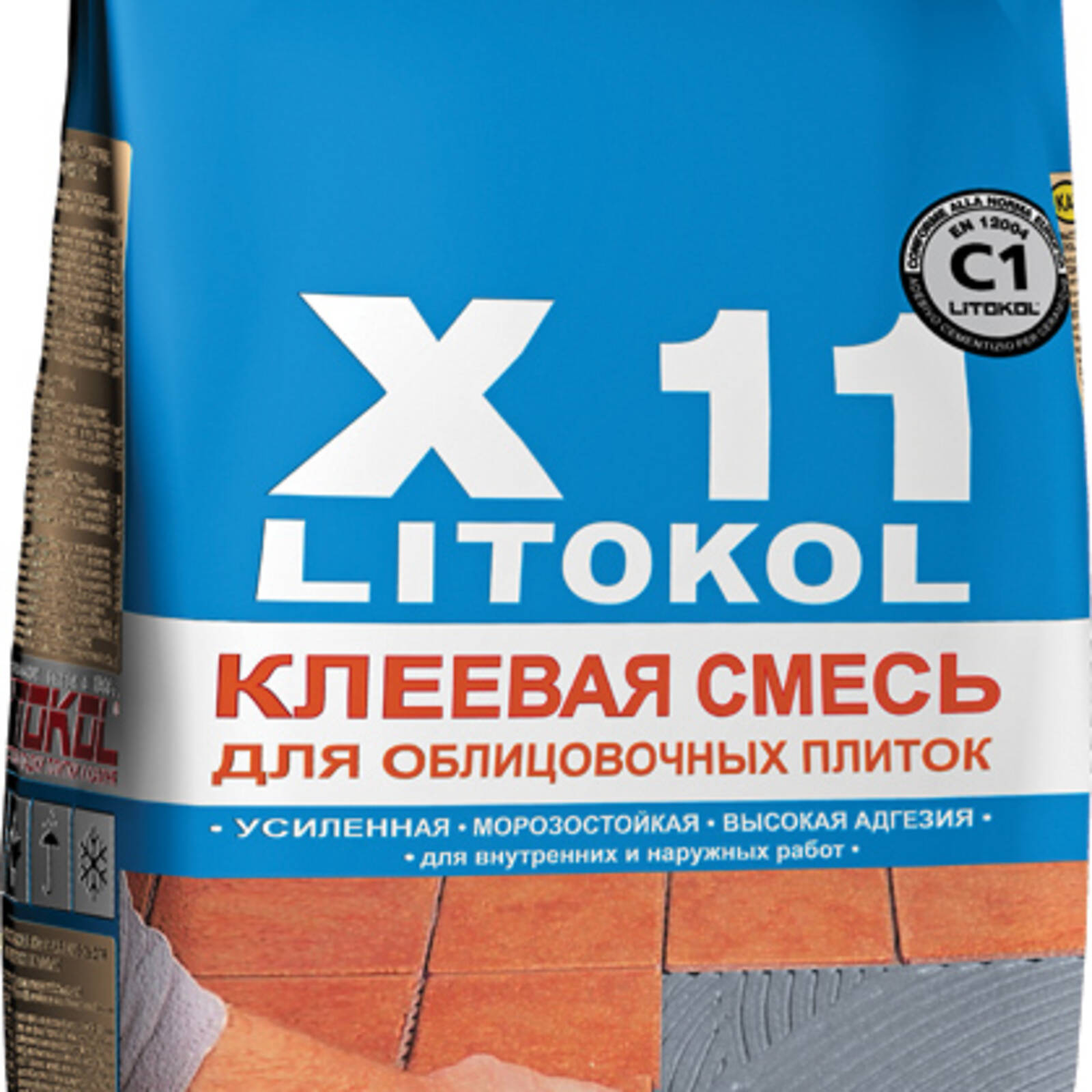 LITOKOL X11 - цементный клей (С) базовый (1) относится к классу C1 согласно классификации Европейских Норм EN 12004 .