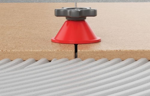 3. На стойку-основание наденьте прижимную шайбу и затяните гайку с требуемым для фиксации нивелированной плитки усилием. Система LITOLEVEL позволяет очень точно выравнивать и надёжно фиксировать плитку в нужном положении до высыхания клеевого состава без сдвигов и перекосов.
